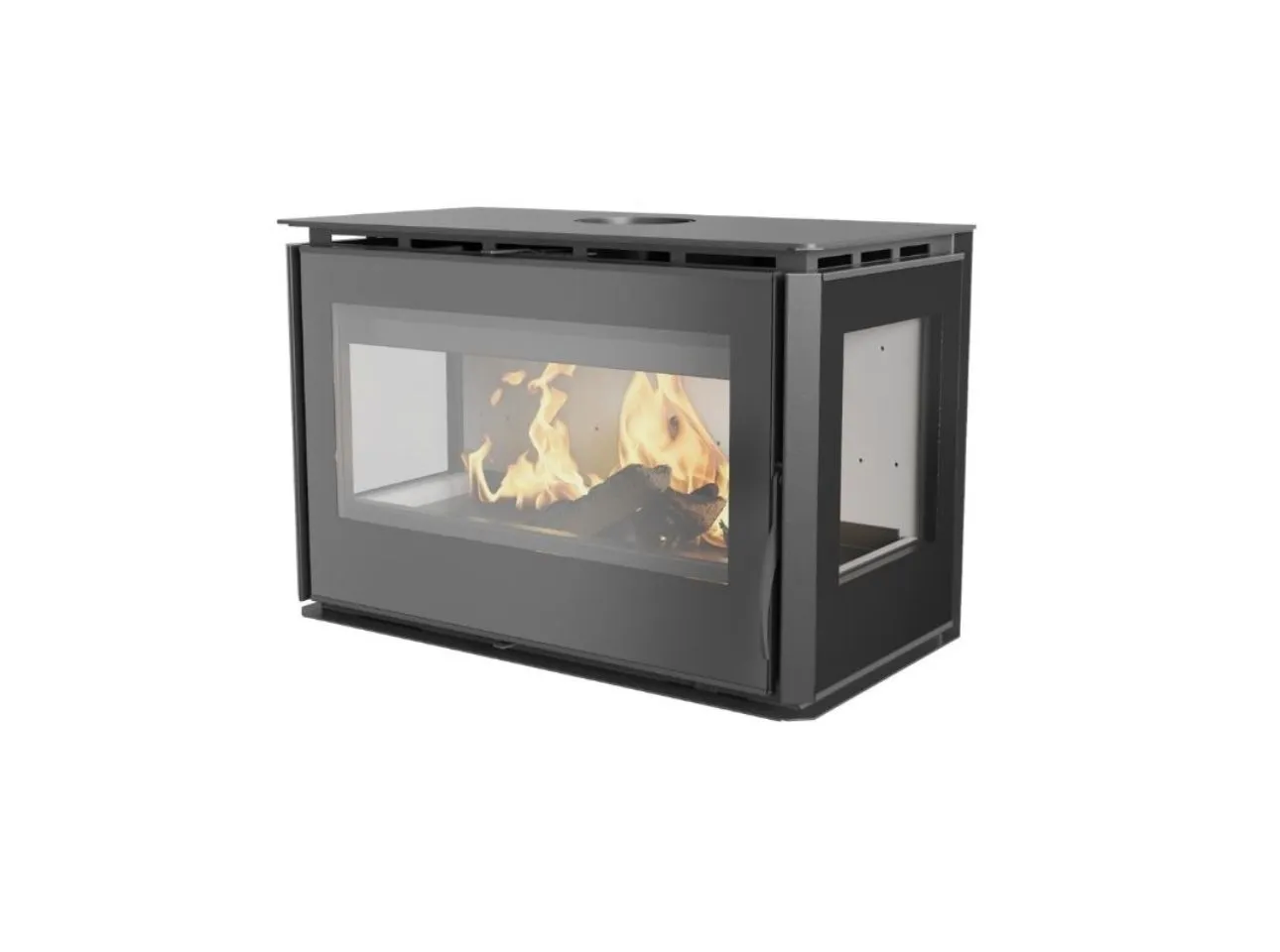 Le poêle à bois Vario L 85 3F signé Brisach offre une vision panoramique du feu grâce à ses trois faces vitrées et accepte des bûches de 50 cm. Performant (9,35 kW), canalisable, avec vitre propre, porte réversible et ventilation en option, il combine confort, design et rendement. Disponible en plusieurs versions : suspendu, sur pied, banc ou podium. Voir plus