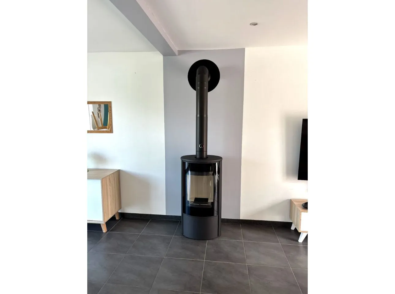 Avec une puissance de 4,7 kW et un rendement saisonnier (ETAS) de 68,1 %, le poêle Volcan garantit une chauffe efficace et respectueuse de l’environnement. Il est canalisable en air frais, parfaitement étanche, et répond aux exigences des maisons à haute performance énergétique. Certifié Flamme Verte 7 étoiles et classé en efficacité énergétique A, il allie écologie, confort thermique et modernité. Sa sortie des fumées peut être positionnée à l’arrière ou sur le dessus, pour s’adapter à toutes les configurations d’installation.