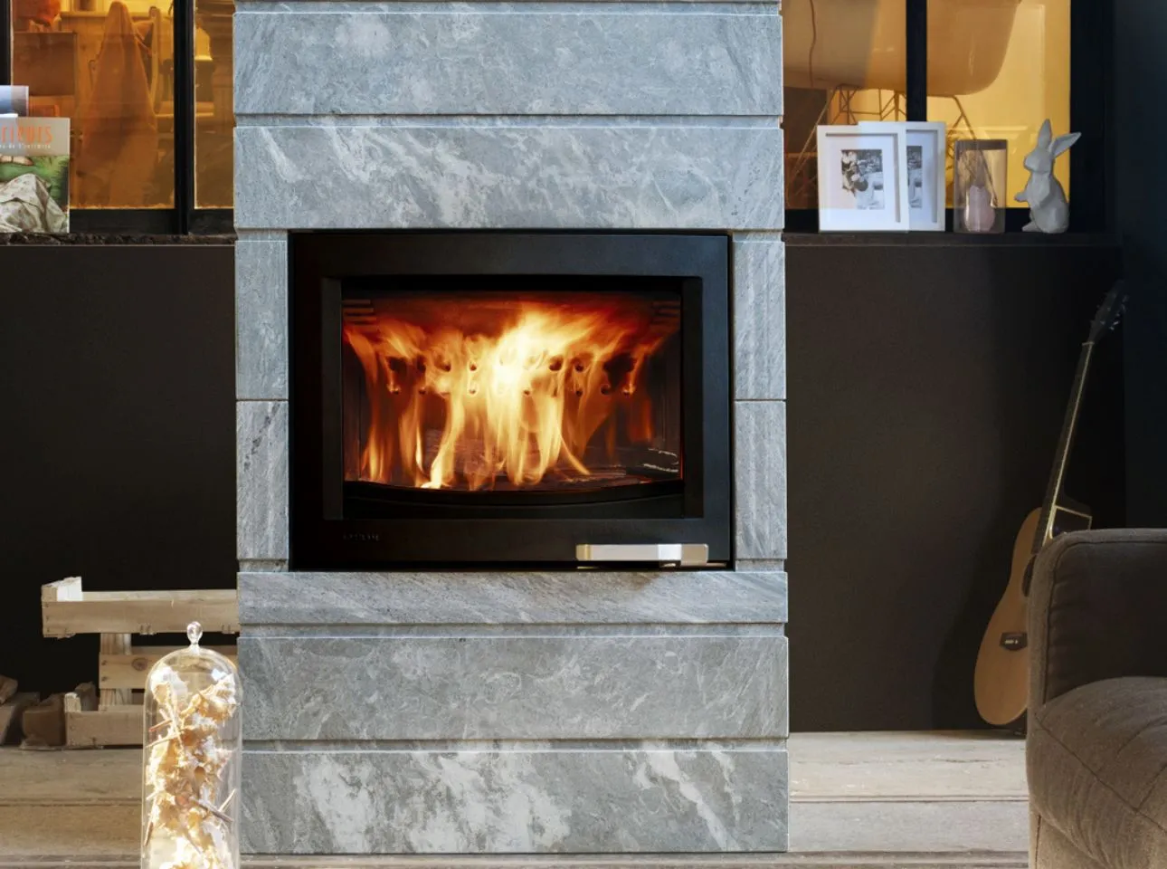 Cet appareil de chauffage au bois fonctionne avec du bois bûche.