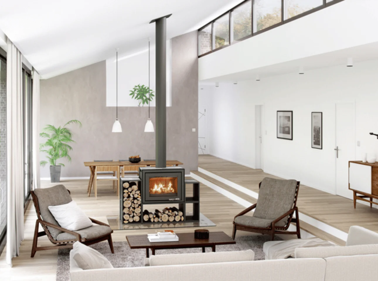 Cet appareil de chauffage au bois fonctionne avec du bois bûche.